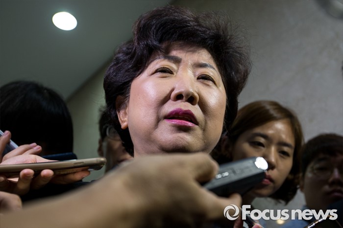 (서울=포커스뉴스) 박인숙 새누리당 의원이 29일 오전 서울 여의도 국회에서 5촌 조카를 5급 비서관에, 동서를 비서에 채용한 사실을 밝히며 국민들에게 사과 입장을 밝히는 기자회견을 마친 뒤 취재진 질문에 답하고 있다.