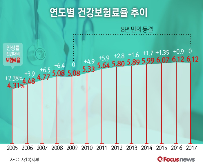 | △ [그래픽] 연도별 건강보험료율 추이 |