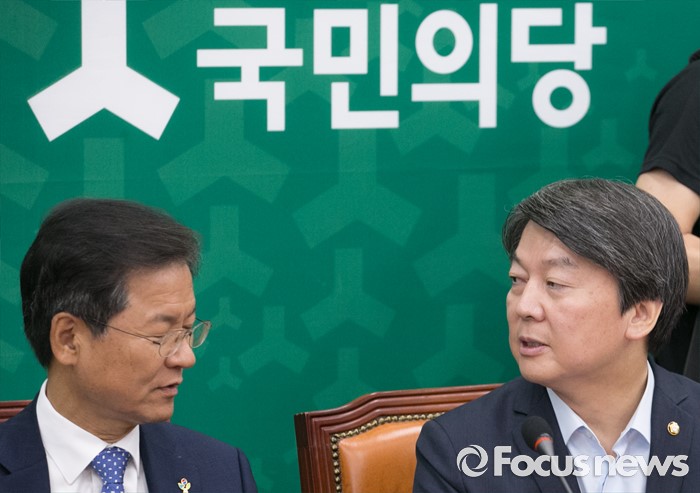 (서울=포커스뉴스) 29일 오전 서울 여의도 국회에서 열린 국민의당 최고위원회의에 참석한 안철수(오른쪽) 상임공동대표와 천정배 공동대표가 대화하고 있다.