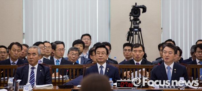 (서울=포커스뉴스) 강신명 경찰청장이 29일 오전 서울 여의도 국회에서 열린 '안전행정위원회 전체회의'에 참석해 더불어민주당 위원들에게 살수차 공개 요구에 대한 입장 설명을 하고 있다.