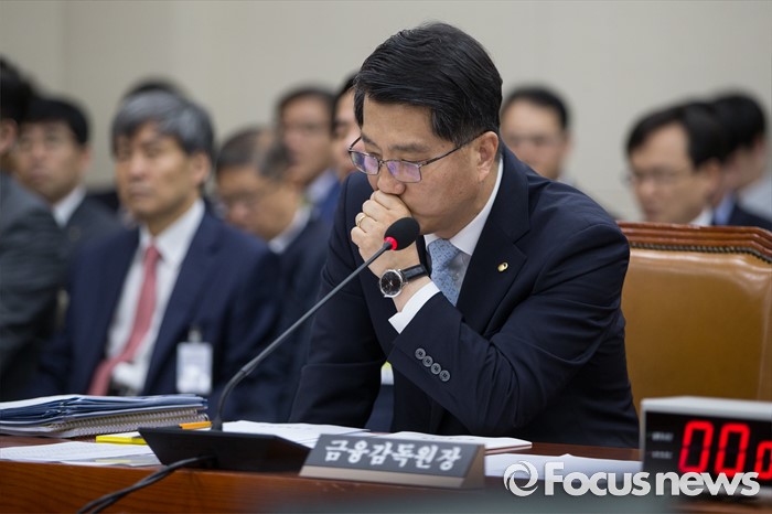 (서울=포커스뉴스) 진웅섭 금융감독원장이 29일 오전 서울 여의도 국회 정무위 전체회의에 출석해 생각에 잠겨 있다.