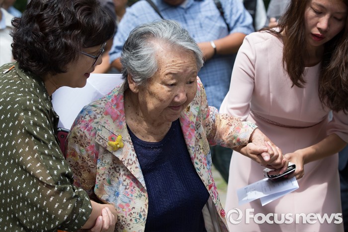 (서울=포커스뉴스) 29일 오전 서울 중구 예장동 옛 통감관저 터에서 열린 일본군 위안부 피해자 추모공원 '기억의 터' 기공식에 길원옥 할머니가 참석하고 있다.