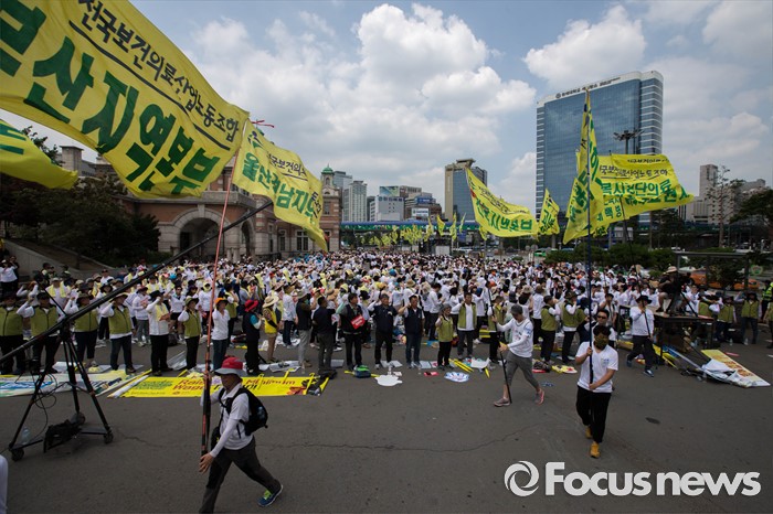 (서울=포커스뉴스) 29일 오후 서울 용산구 서울역 앞에서 보건의료노조의 총력투쟁 결의대회 집회가 열리고 있다.