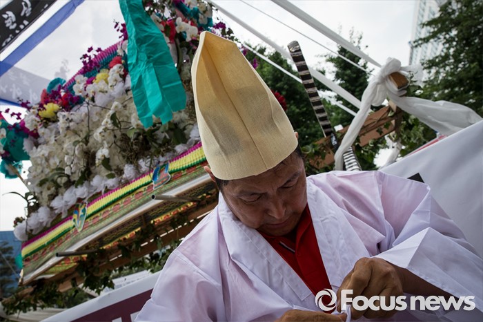 (서울=포커스뉴스) 29일 오후 서울 영등포구 국회의사당 인근에서 전국화훼협회 등 27개 단체원들이 김영란법 반대를 외치며 꽃상여를 메고 행진준비를 하고 있다.