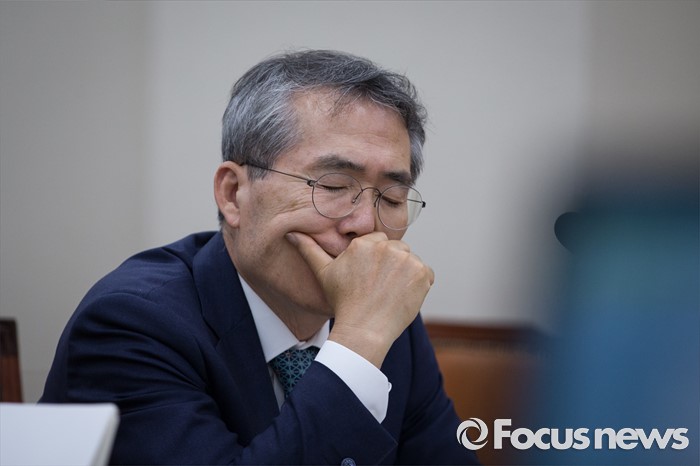 (서울=포커스뉴스) 박준성 최저임금위원회 위원장이 29일 오후 서울 여의도 국회에서 열린 환경노동위원회 전체회의에서 의원들의 질문을 듣고 있다.