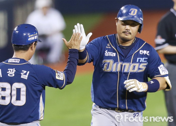 | △ 하이파이브하는 NC 이호준 |