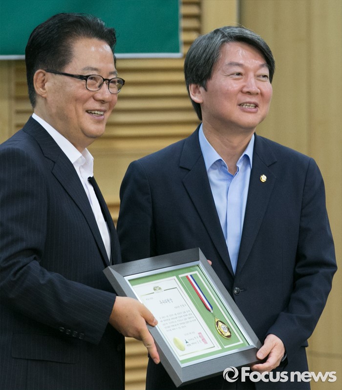 | △ 안철수 전 대표에게 시상하는 박지원 비대위원장 |