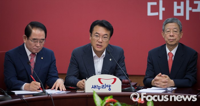 (서울=포커스뉴스) 정진석(가운데) 새누리당 원내대표가 30일 오전 서울 여의도 당사에서 열린 혁신비상대책위원회의에서 모두발언을 하고 있다.