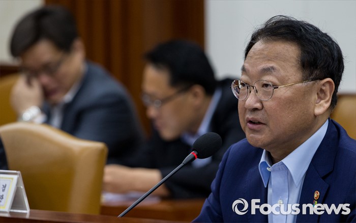 (서울=포커스뉴스) 30일 오전 서울 종로구 정부서울청사에서 열린 제2차 산업경쟁력 강화 관계장관회의에 참석한 유일호 부총리 겸 기획재정부 장관이 모두발언을 하고 있다.
