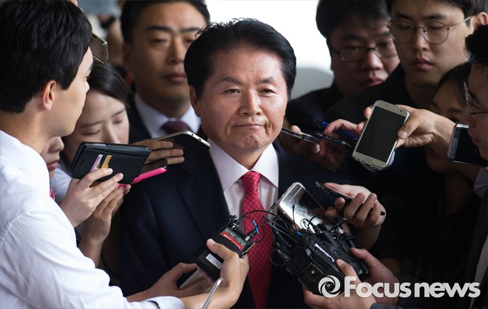 (서울=포커스뉴스) 농협중앙회장 부정선거의혹 관련 김병원 농협 회장이 조사 받기 위해 피의자 신분으로 30일 오전 서울 서초구 서울중앙지방검찰청으로 들어서며 취재진 질문을 듣고 있다.