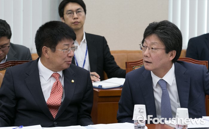 (서울=포커스뉴스) 30일 오전 서울 여의도 국회에서 열린 기획재정위원회 전체회의에 참석한 유승민(오른쪽), 이종구 새누리당 의원이 대화하고 있다.