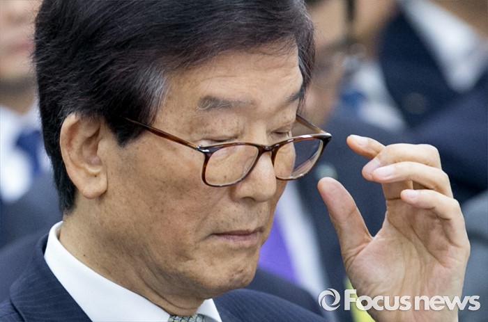 (서울=포커스뉴스) 30일 오전 서울 여의도 국회에서 열린 정무위원회 전체회의에 참석한 이동걸 한국산업은행장이 안경을 만지고 있다.
