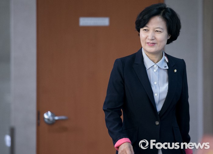 (서울=포커스뉴스) 전당대회 출마를 선언한 추미애 더불어민주당 의원이 30일 오전 서울 여의도 국회 정론관에서 새만금 공항 건설 공약과 관련 기자회견을 위해 입장하고 있다.