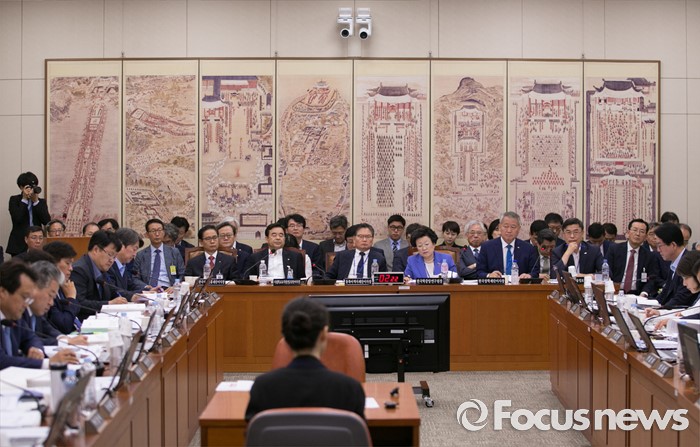 (서울=포커스뉴스) 30일 오전 서울 여의도 국회에서 열린 교육문화체육관광위원회 전체회의에 참석한 교육분야 산하기관 및 유관기관 기관장들이 의원들의 질의에 답하고 있다.