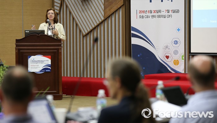 (청주=포커스뉴스) 30일 오전 충북 청주 오송 C&V 센터에서 열린 제3차 바이오의약품분야 WHO협력센터 네트워크 회의에서 이바나 네조빅(WHO Dr. Ivana Knezevic) WHO본부 전문가가 WHO의 나아갈 방향이란 주제로 기조연설을 하고 있다.