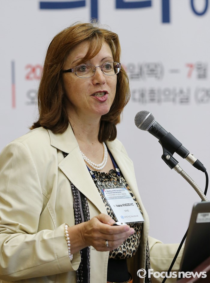 (청주=포커스뉴스) 30일 오전 충북 청주 오송 C&V 센터에서 열린 제3차 바이오의약품분야 WHO협력센터 네트워크 회의에서 이바나 네조빅(WHO Dr. Ivana Knezevic) WHO본부 전문가가 WHO의 나아갈 방향이란 주제로 기조연설을 하고 있다.