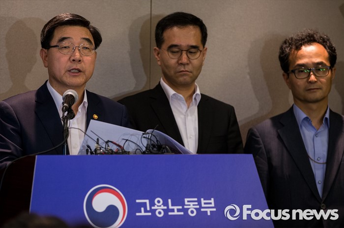(서울=포커스뉴스) 30일 오전 서울 중구 프레스센터에서 이기권 고용노동부 장관이 조선업 특별고용지원업종 지정안 심의결과를 발표하고 있다.