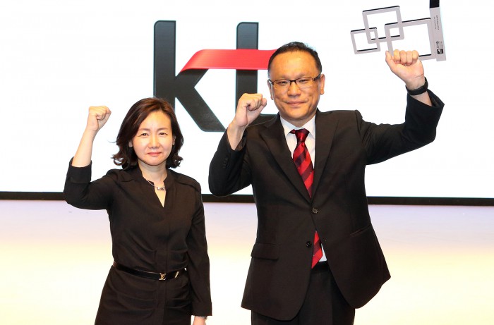 김성욱 KT뮤직 대표는 “지속적으로 KT의 네트워크 및 IT기술과 결합한 첨단 음악서비스로 고객에게 최고의 음악가치를 전해 고객만족을 이끌어 낼 것”이라고 밝혔다.고윤전 KT 고객분석실장 고윤전 상무(왼쪽), 조성수 KT뮤직 부사장이 화이팅을 외치고 있다.<사진제공=KT>