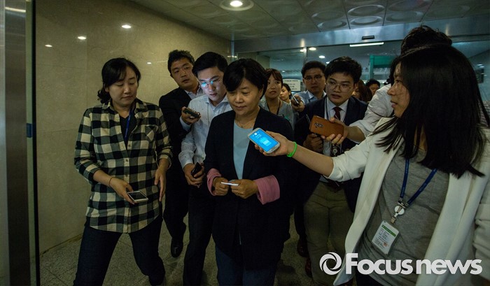 (서울=포커스뉴스) 친인척을 보좌진으로 채용하는 등 여러 논란으로 위기에 놓인 서영교 더불어민주당 의원이 30일 오후 서울 여의도 국회에서 기자회견을 마친 뒤 취재진에게 질문을 받고 있다.