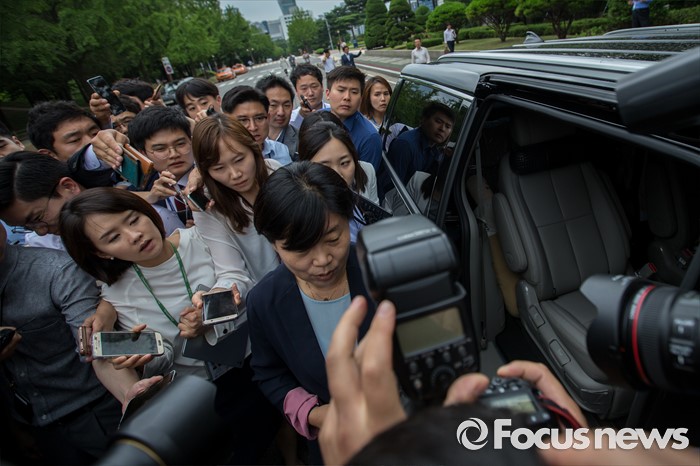 (서울=포커스뉴스) 친인척을 보좌진으로 채용하는 등 여러 논란으로 위기에 놓인 서영교 더불어민주당 의원이 30일 오후 서울 여의도 국회에서 기자회견을 마친 뒤 취재진에게 질문을 받고 있다.