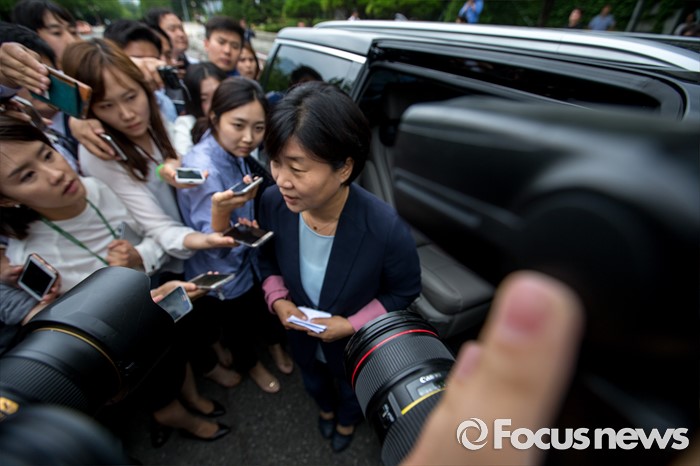 (서울=포커스뉴스) 친인척을 보좌진으로 채용하는 등 여러 논란으로 위기에 놓인 서영교 더불어민주당 의원이 30일 오후 서울 여의도 국회에서 기자회견을 마친 뒤 취재진 질문에 답하고 있다.