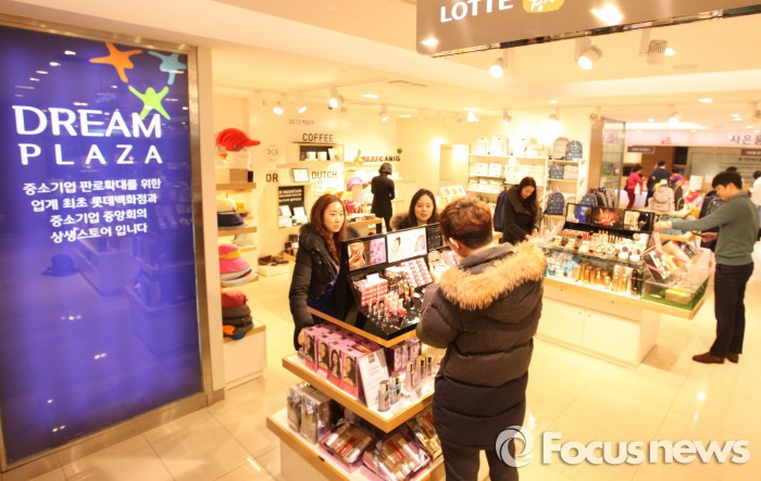 이어 "이번 조치를 계기로 백화점 외에 대형마트와 홈쇼핑, 온라인 쇼핑몰 분야로 확산돼 납품 중소기업들이 을의 입장에서 벗어나 공정한 생태계에서 안정적인 성장을 이룰 수 있는 환경 마련을 위해 정부의 뒷받침이 지속되기를 희망한다"고 덧붙였다.소공동 롯데백화점 본점 내에 위치한 중소기업 전용 판매관 드림플라자 매장 전경.<사진제공=롯데백화점>