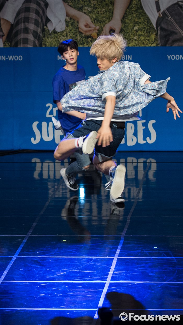 (서울=포커스뉴스) 30일 오후 서울 강남구 일지아트홀에서 열린 아이돌 그룹 아스트로의 두번째 미니앨범 'Summer Vibes' 발표 쇼케이스에 참여한 멤버 진진이 신곡무대를 선보이고 있다.