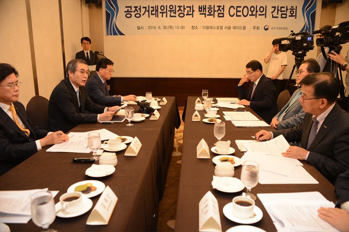(서울=포커스뉴스) 정재찬 공정거래위원장이 30일 오후 서울 팔래스호텔에서 5개 백화점 CEO 간담회를 주재하고 있다. <사진제공=공정거래위원회>