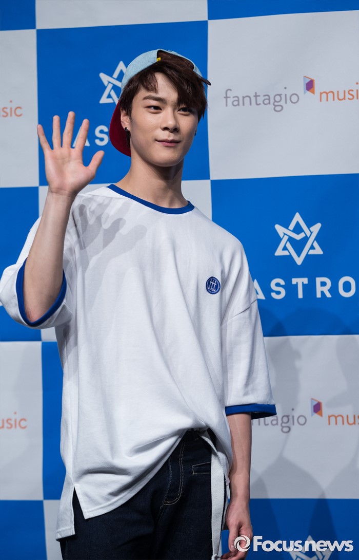(서울=포커스뉴스) 30일 오후 서울 강남구 일지아트홀에서 열린 아이돌 그룹 아스트로의 두번째 미니앨범 'Summer Vibes' 발표 쇼케이스에 참여한 멤버 문빈이 포토타임을 갖고 있다.