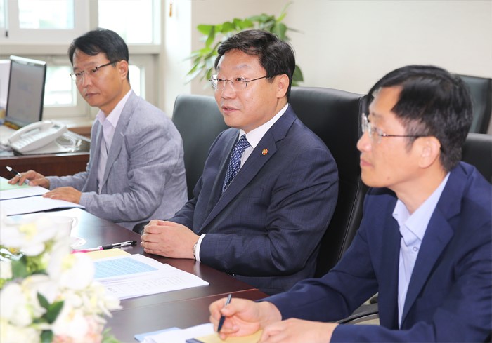 (서울=포커스뉴스) 주형환 산업통상자원부 장관이 30일 서울 외교부청사 집무실에서 프레드 업턴(Fred Upton) 美 연방 에너지·상업위 위원장 등 하원의원단(6명)의 예방을 받고, 한미 FTA 및 에너지 협력에 관해 의견을 교환하고 있다. <사진제공=산업통상자원부>