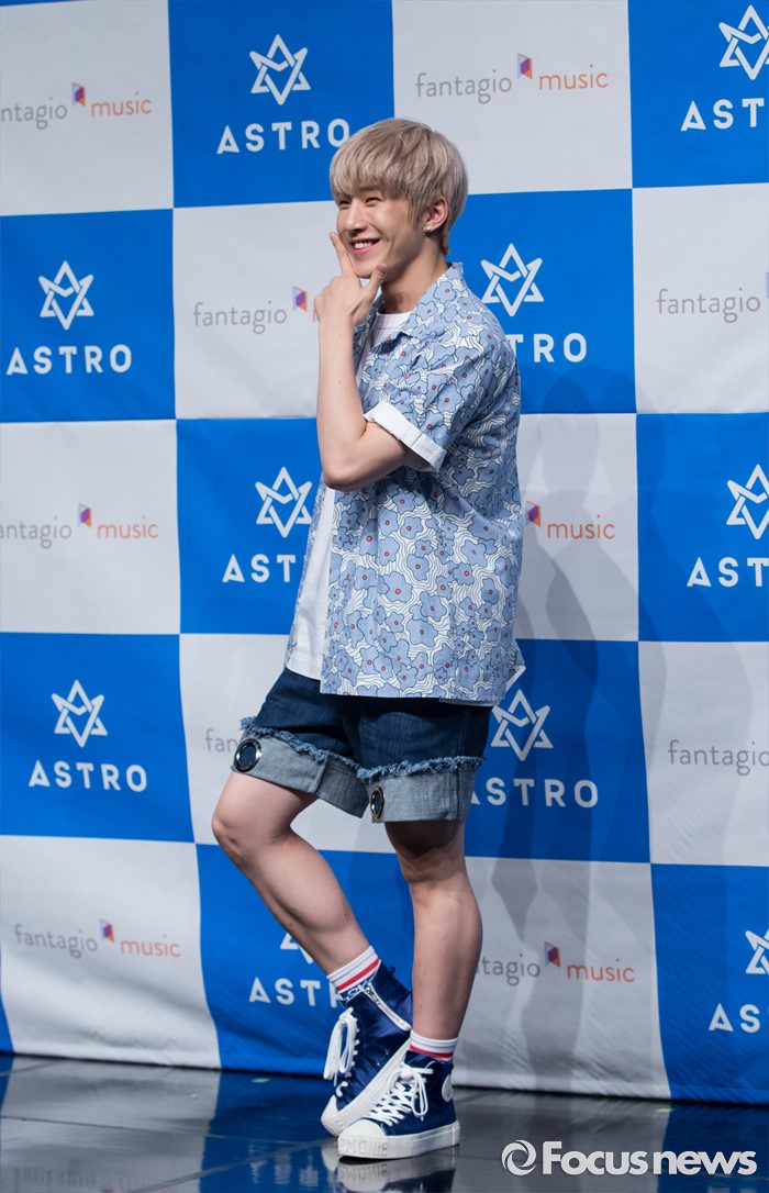 (서울=포커스뉴스) 30일 오후 서울 강남구 일지아트홀에서 열린 아이돌 그룹 아스트로의 두번째 미니앨범 'Summer Vibes' 발표 쇼케이스에 참여한 멤버 진진이 포토타임을 갖고 있다.