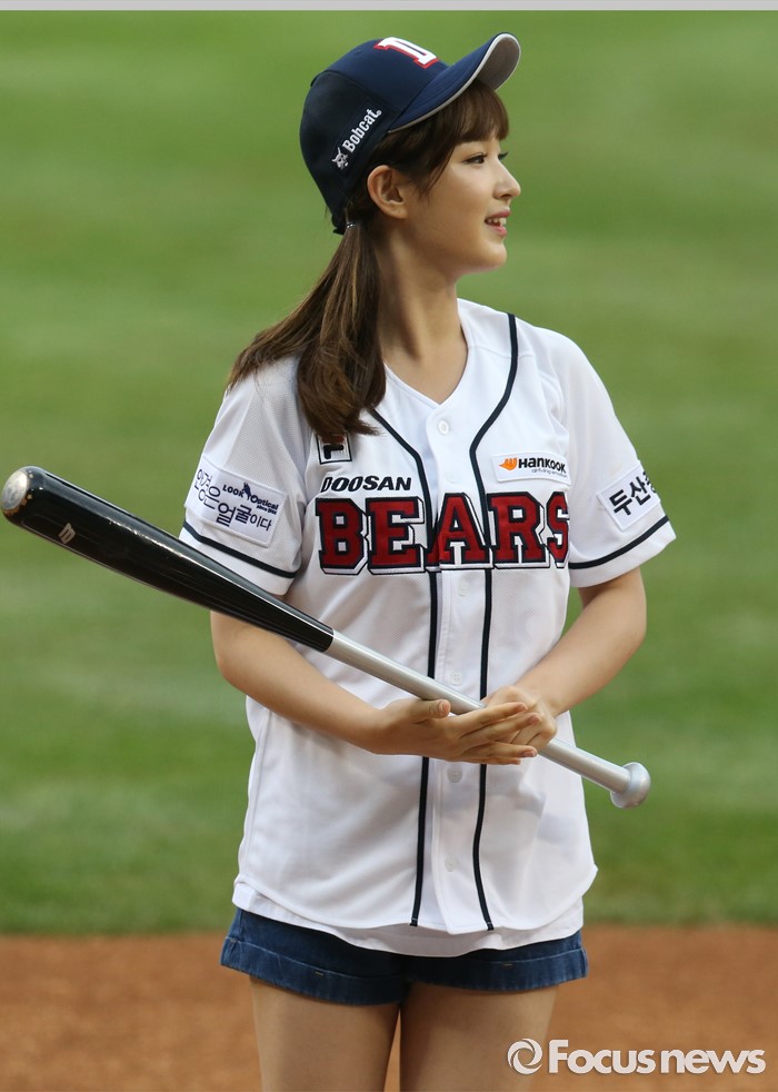(서울=포커스뉴스) 30일 서울 잠실구장에서 열린 2016 프로야구 NC-두산 경기에 앞서 걸그룹 '라붐'의 율희가 시타를 위해 타석에 서 있다.