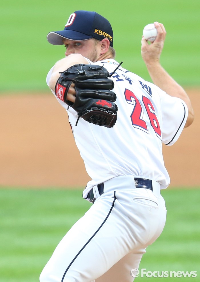 (서울=포커스뉴스) 30일 서울 잠실구장에서 열린 2016 프로야구 NC-두산 경기에서 1회초 두산 선발투수 보우덴이 투구하고 있다.