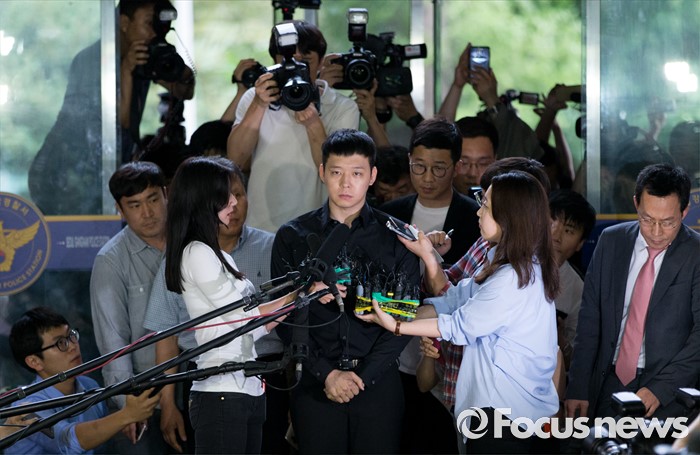 취재진 질문 답하는 박유천