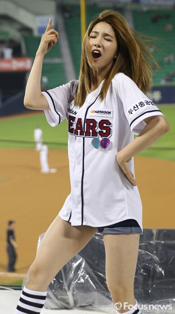 (서울=포커스뉴스) 30일 서울 잠실구장에서 열린 2016 프로야구 NC-두산 경기에서 인기 걸그룹 '라붐'이 경기전 시구에 이어 클리닝타임에 응원단상에 올라 귀엽고 깜찍한 율동으로 관중들에게 한 여름의 더위를 식혀주는 깜짝 공연을 펼쳤다.