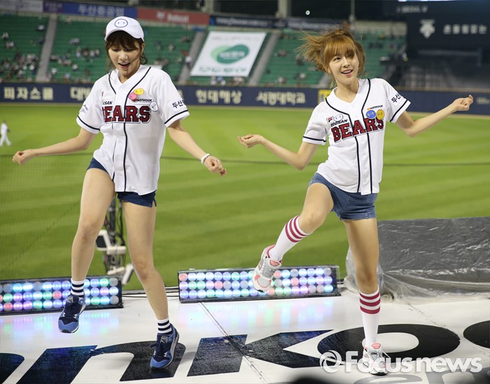 (서울=포커스뉴스) 30일 서울 잠실구장에서 열린 2016 프로야구 NC-두산 경기에서 인기 걸그룹 '라붐'이 경기전 시구에 이어 클리닝타임에 응원단상에 올라 귀엽고 깜찍한 율동으로 관중들에게 한 여름의 더위를 식혀주는 깜짝 공연을 펼쳤다.