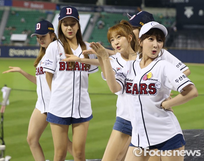 (서울=포커스뉴스) 30일 서울 잠실구장에서 열린 2016 프로야구 NC-두산 경기에서 인기 걸그룹 '라붐'이 경기전 시구에 이어 클리닝타임에 응원단상에 올라 귀엽고 깜찍한 율동으로 관중들에게 한 여름의 더위를 식혀주는 깜짝 공연을 펼쳤다.