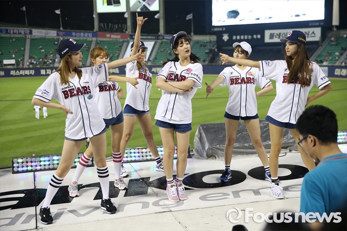 (서울=포커스뉴스) 30일 서울 잠실구장에서 열린 2016 프로야구 NC-두산 경기에서 인기 걸그룹 '라붐'이 경기전 시구에 이어 클리닝타임에 응원단상에 올라 귀엽고 깜찍한 율동으로 관중들에게 한 여름의 더위를 식혀주는 깜짝 공연을 펼쳤다.