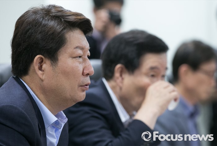 (서울=포커스뉴스) 권영진 대구시장이 1일 오전 서울 여의도 국회 의원회관에서 영남권 신공항 백지화 및 대구 공군비행장 이전과 존치문제 등 논의를 위해 열린 새누리당 대구지역 의원들과의 간담회에 참석해 모두발언을 하고 있다.