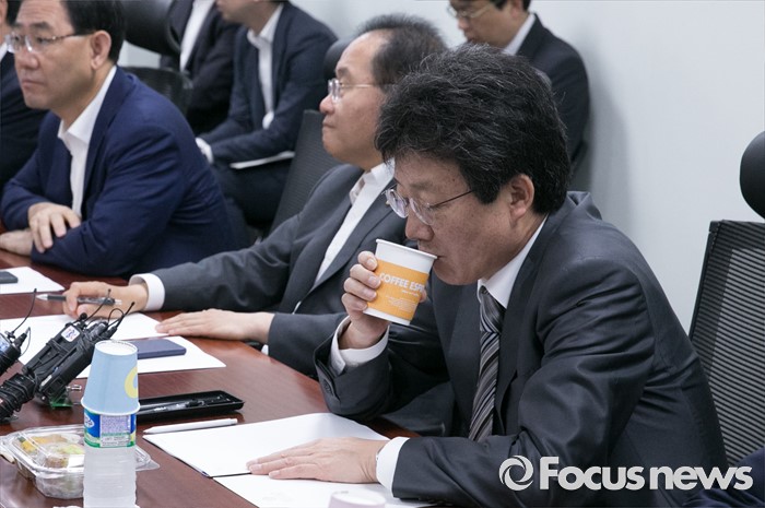 (서울=포커스뉴스) 1일 오전 서울 여의도 국회 의원회관에서 영남권 신공항 백지화 및 대구 공군비행장 이전과 존치문제 등 논의를 위해 열린 새누리당 대구지역 의원들과의 간담회에 참석한 유승민 의원이 음료를 마시고 있다.
