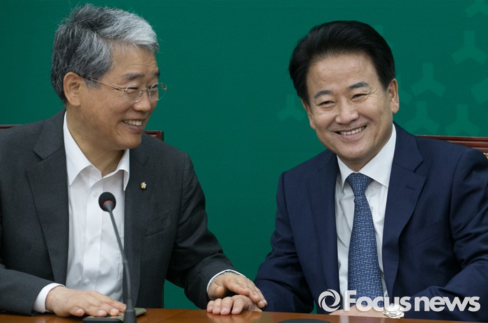 (서울=포커스뉴스) 1일 오전 서울 여의도 국회에서 열린 국민의당 최고위원-중진의원 연석회의에 참석한 김동철(왼쪽), 정동영 의원이 대화하고 있다.