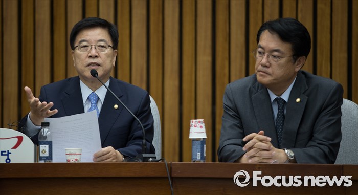 (서울=포커스뉴스) 김광림 새누리당 정책위의장이 1일 오전 서울 여의도 국회에서 열린 원내대책회의에서 발언하고 있다. 오른쪽은 정진석 원내대표.