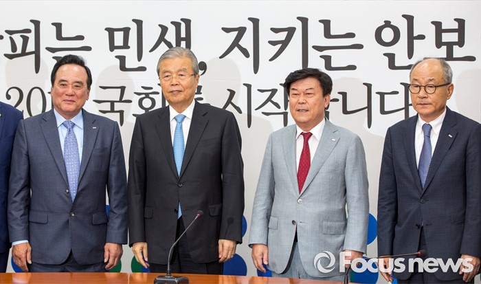 (서울=포커스뉴스) 김종인(왼쪽 두 번째) 더불어민주당 비상대책위 대표와 박성택(오른쪽 두 번째) 중소기업중앙회 회장이 1일 오전 서울 여의도 국회에서 면담에 앞서 사진촬영 하고 있다.