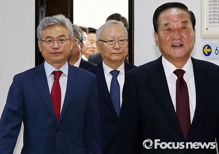 | △ 회의 참석하는 이철우-이병호-서청원 |