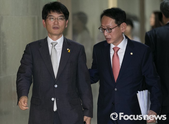 (서울=포커스뉴스) 1일 오전 서울 여의도 국회에서 열린 운영위원회 전체회의에 김도읍(오른쪽) 새누리당 간사와 박완주 더불어민주당 간사가 참석하고 있다.