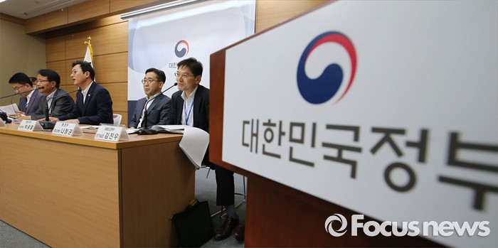 (세종=포커스뉴스) 이정섭 환경부 차관이 1일 오전 세종시 정부세종청사 6동 브리핑룸에서 미세먼지 관리 특별대책 세부이행계획을 발표하고 있다. 정부는 브리핑에서 2020년까지 친환경차 보급에 3조원, 충전인프라에 7600억원, 노후경유차 조기폐차에 1800억원을 투자하고 금년 7월중 에너지상대가격 조정 연구 착구, 석탄화력발전도 미세먼지 저감대책 발표, 노후경유차 수도권 운행제한 시행 방안 확정 등 핵심대책의 구체와 및 일정단축 등을 주요내용으로 발표했다. 왼쪽부터 민상기 기획재정부 신성장정책과장, 김용래 산업통상자원부 에너지산업국장, 이정섭 차관, 박광열 해양수산부 해사안전국장, 나정균 환경부 기후대기정책관.