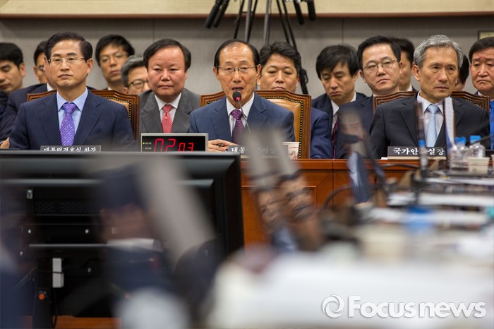 (서울=포커스뉴스) 이원종 대통령비서실장이 1일 오전 서울 여의도 국회에서 열린 '운영위원회 전체회의'에 참석해 질의응답 하고 있다.