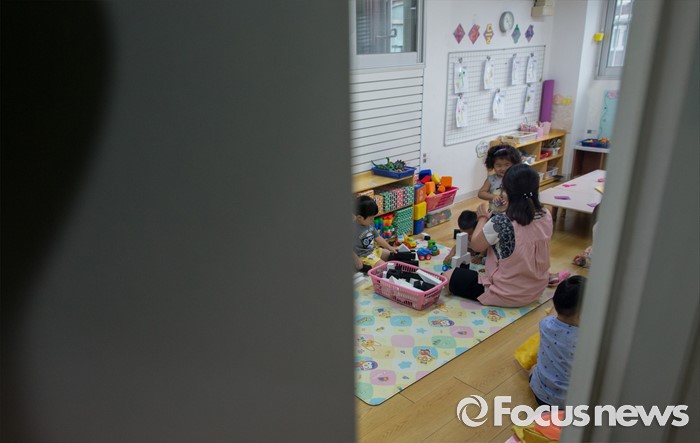(서울=포커스뉴스) 어린이집을 종일반과 맞춤반으로 나눈 맞춤형 보육 제도가 시행된 1일 서울 성동구 신영창의어린이집에서 원아들이 수업을 하고 있다.