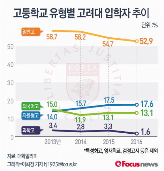 (서울=포커스뉴스) 포커스뉴스가 최근 4년간의 고등학교 유형별 고려대 입학자 추이를 비교해봤다.