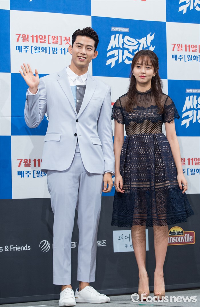 (서울=포커스뉴스) 1일 오후 서울 강남구 임피리얼 팰리스호텔에서 열린 tvN 월화드라마 '싸우자 귀신아' 제작발표회에 참석한 배우 옥택연(왼쪽)과 김소현이 포토타임을 갖고 있다.
